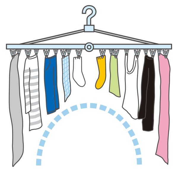 洗濯物同士がくっつかないよう、間隔を空けて干します。
