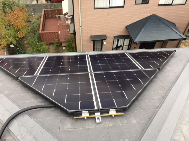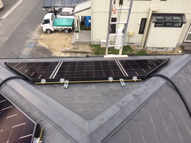 屋根の形に添て三角形のパネルを含めて、東、西、南向きに、