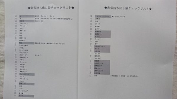 我が家の災害時の非常用グッズ一覧は、こちら。