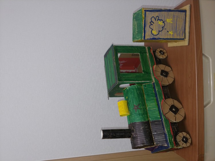 夏休みの宿題で工作を完成させました。実家に帰った時に祖父といっしょに子供達が頑張って段ボール工作をしました。