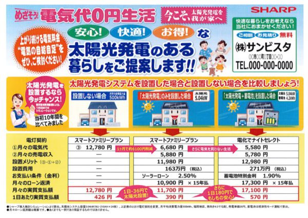 チラシにも、あるように太陽光を設置していない状態の電気代金で