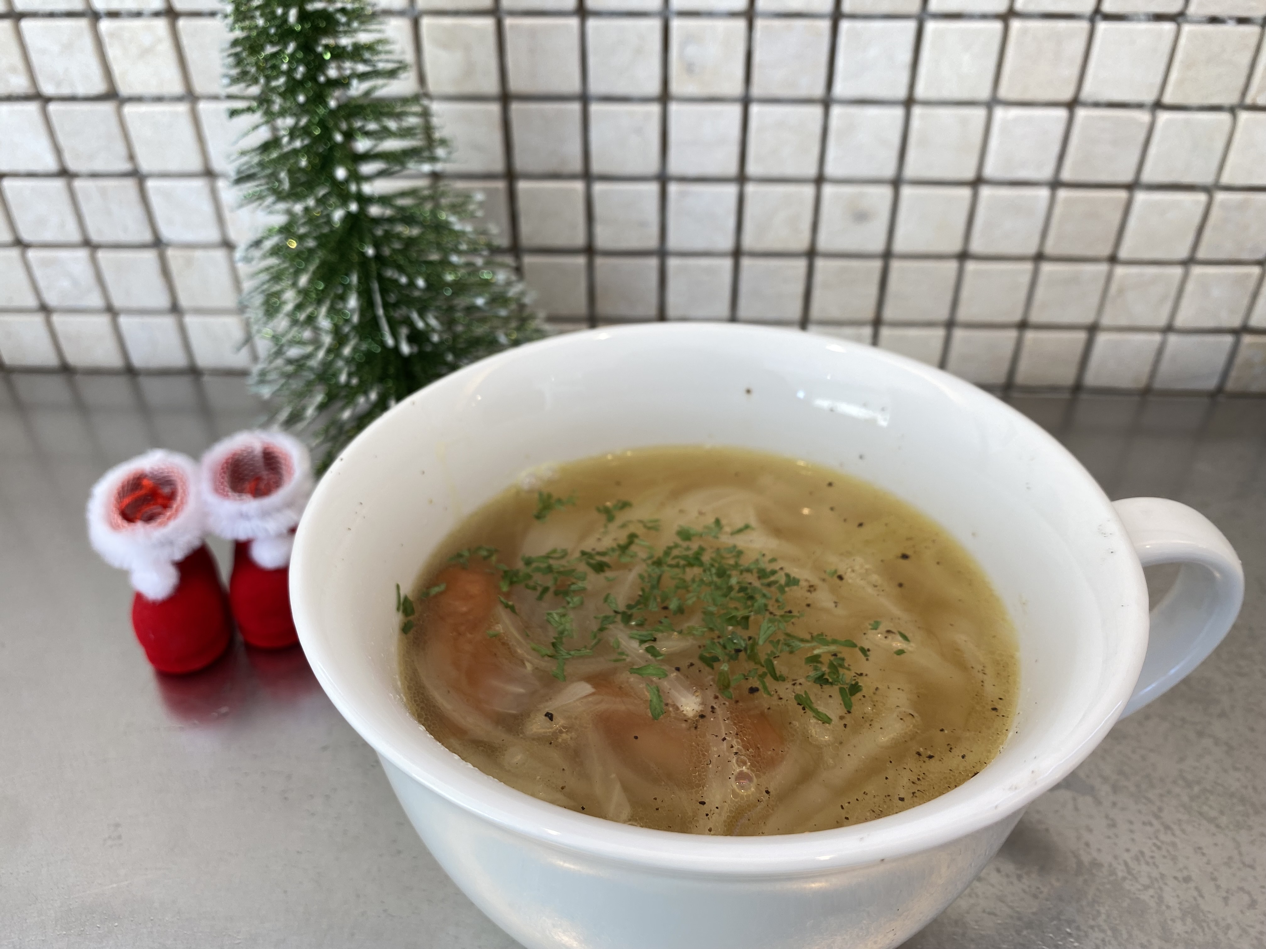 レンジで簡単ににトロトロの玉ねぎスープができるレシピです!