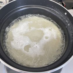 ①沸騰したたっぷりのお湯に麺をいれて軽くほぐす
