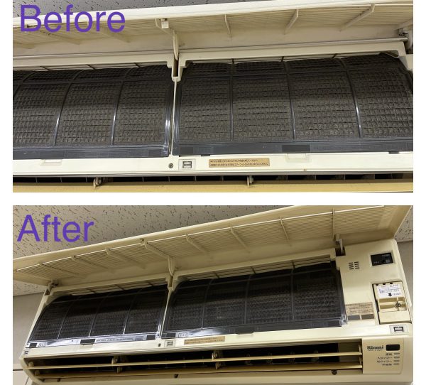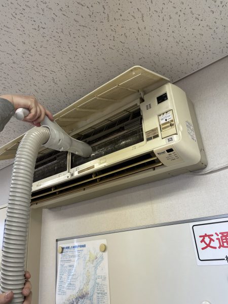 今回はあまり人の出入りの少ない事務所の休憩室のエアコンを掃除してみました。