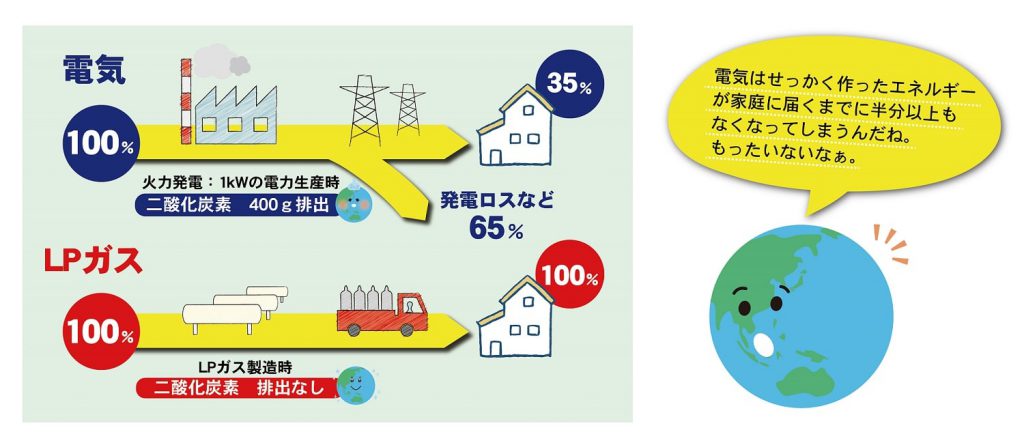 しかし、その電気を作る時や家庭に届くまでをLPガスを比較するとどうでしょうか。