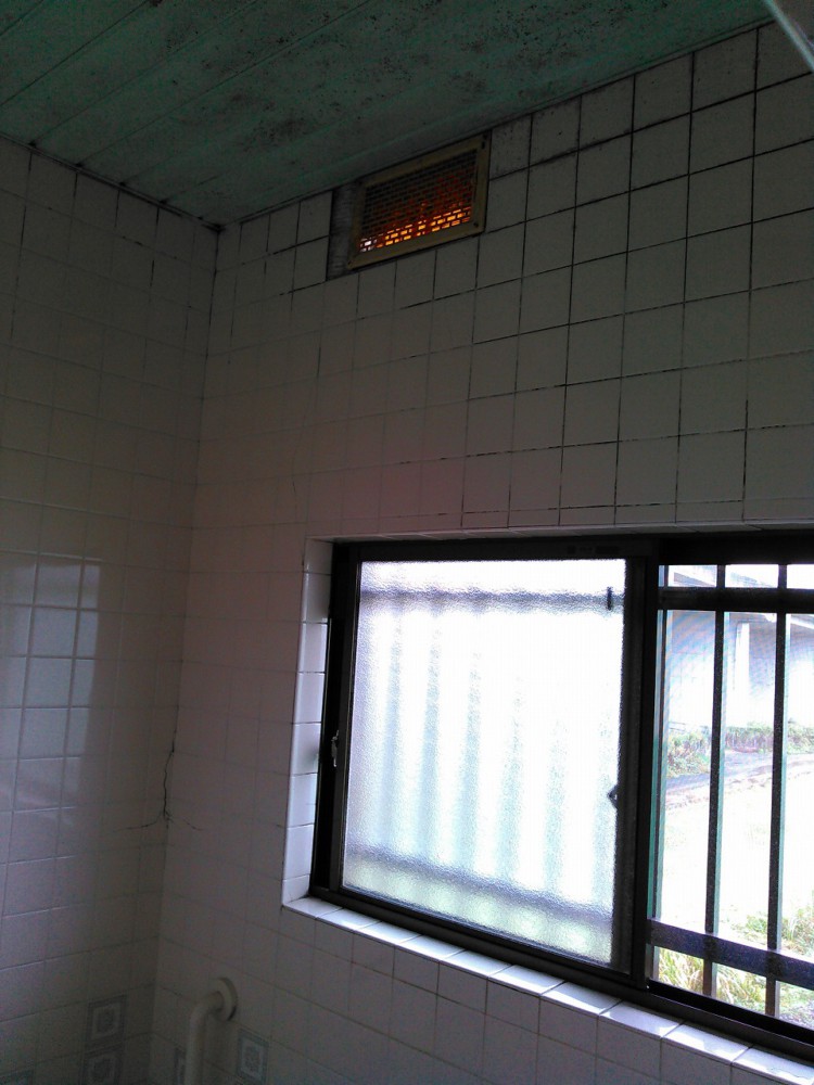 お客様の浴室は在来工法なので換気口を利用して本体を設置。