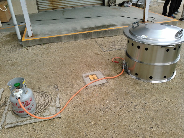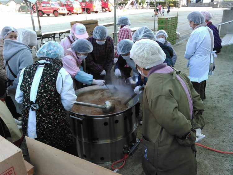 昨年、松山の生石地区自主防災連合会様から緊急災害用煮炊釜の注文を頂き、防災訓練で炊き出しをしました。