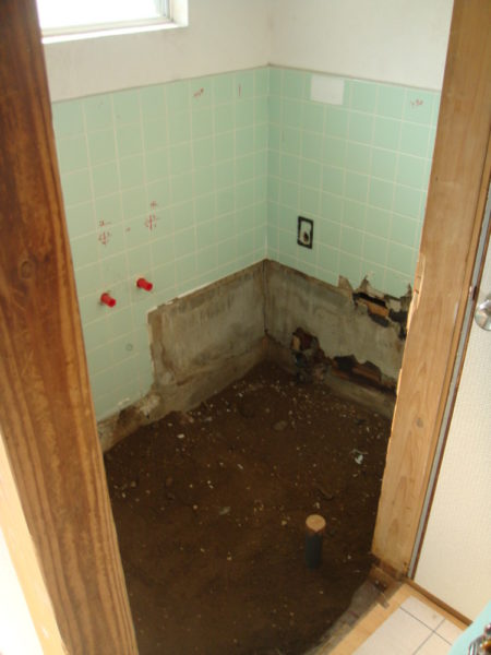 築30年の借家で浴室が在来工法です。今回空き家になり、最初は浴槽のみ取替予定でしたが、今後のことを考えユニットバスへの変更を大家様に提案し成約。工事着工となりました。