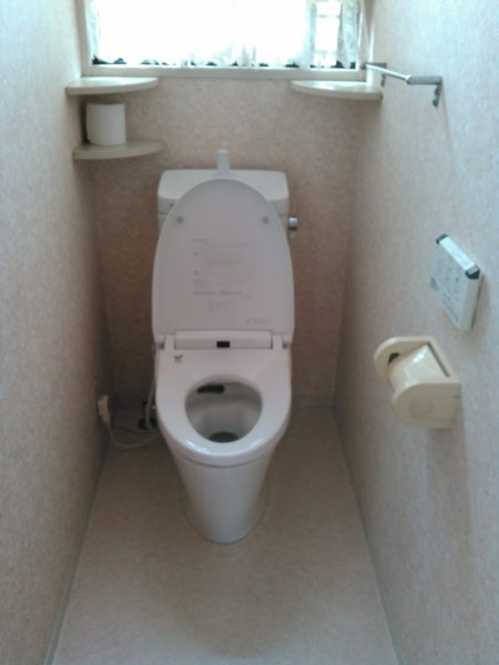 便器取替と同時に床のクッションフロアも張替えし、トイレがとても明るくなりました。