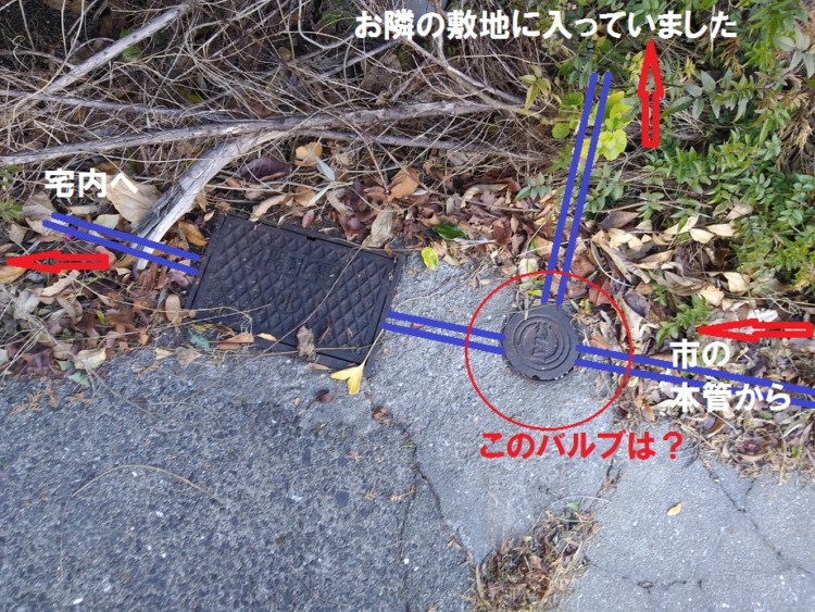 おやおや 変なところにバルブがそして隣のお宅に この場合は