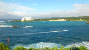 私が行ったのはまさに台風シーズン。一日早ければ飛行機が飛ばないという状況でしたが当日は快晴!!海は若干濁っていましたが、那覇空港に近づくにつれて機内から見える海に感動しました。