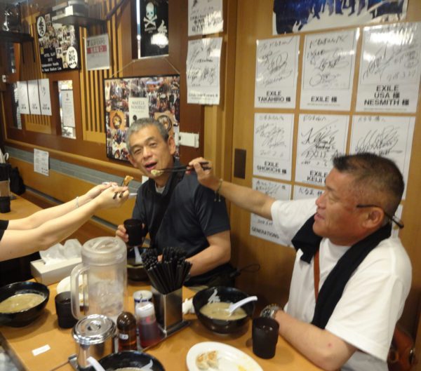 お昼ごはんは博多ラーメン。店内にはサインが沢山!ラーメンは満腹すぎて、この後の劇団四季ライオンキングは睡魔に負けた方も数名いたとかいないとか…。