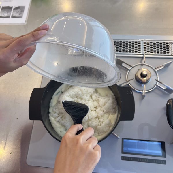 ③ ②のスープに色が付き、スープが冷めたら①を炊飯釜に入れ、目盛まで②を入れ炊飯する。