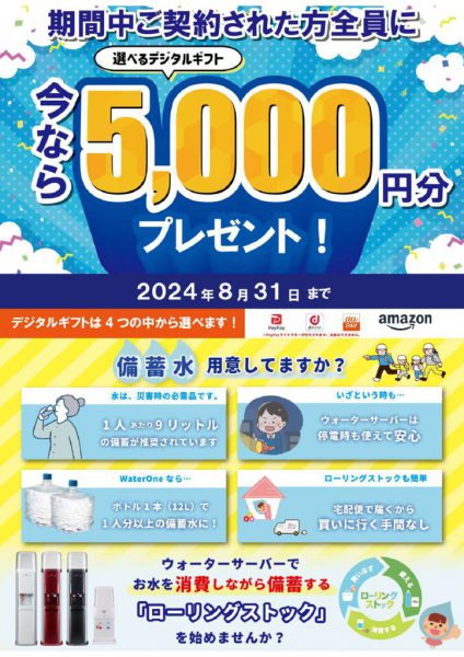 2024年8月31日までにご契約された方全員に選べるギフト5,000円分プレゼント!