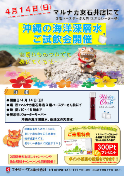 【お知らせ】沖縄の海洋深層水試飲会開催