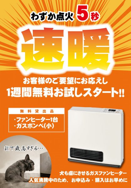 今年の冬もガスファンヒーター大活躍間違いなしです!