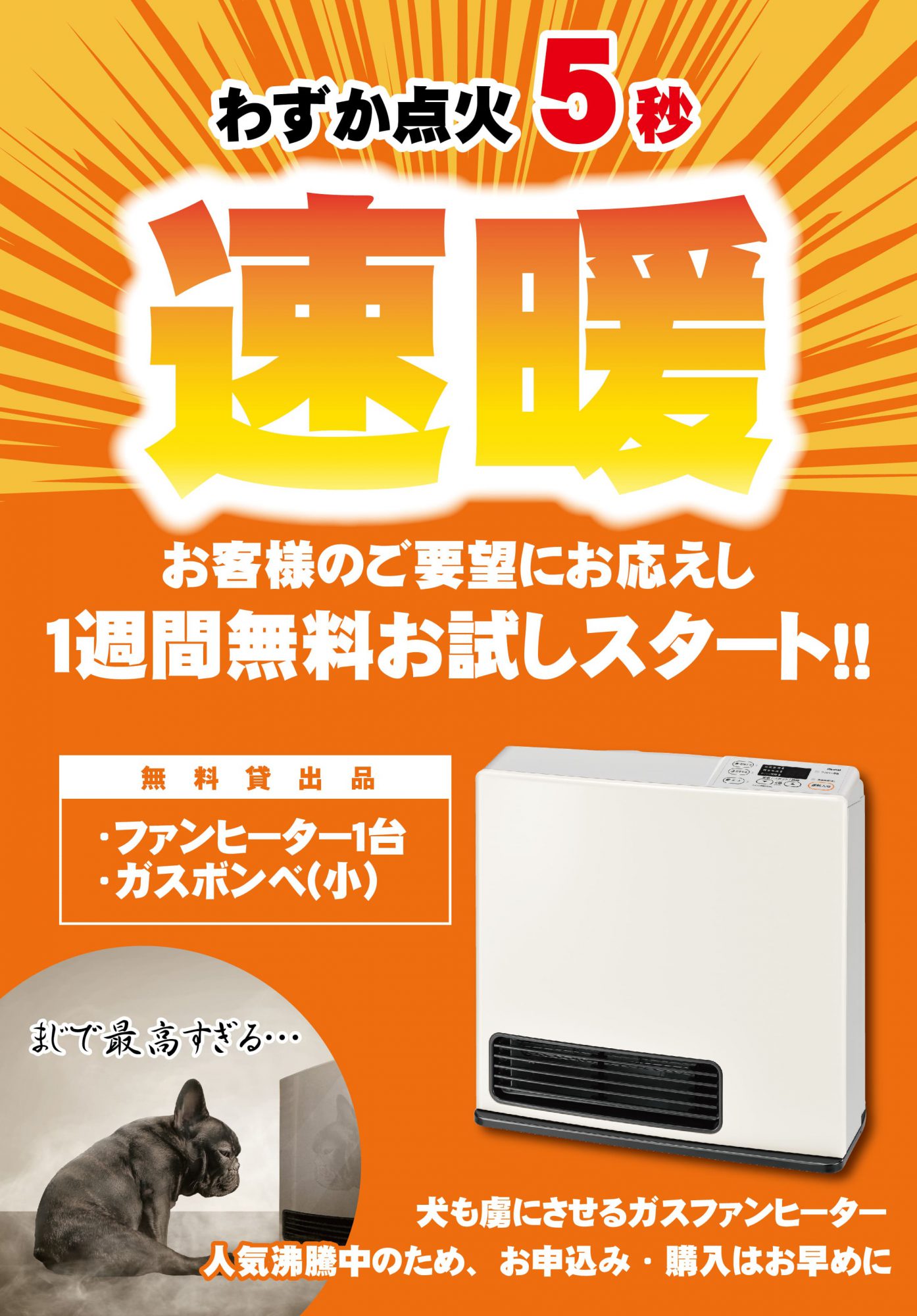 ガスファンヒーターお試し2023