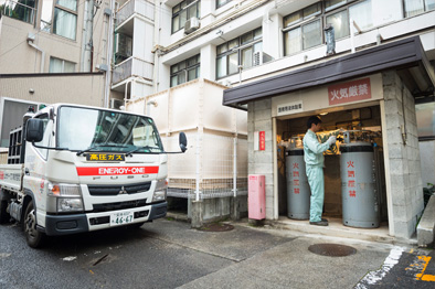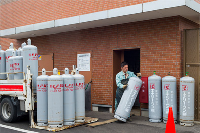 当社の柱となっている部門で、LP(プロパン)ガスの製造及び販売と、ガス器具等の販売を行っています。一般のご家庭を中心に供給する直売部と、販売店様に供給する卸部で構成されています。