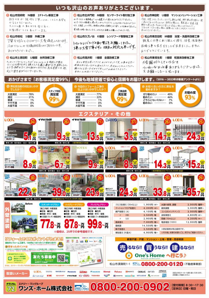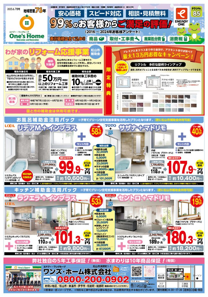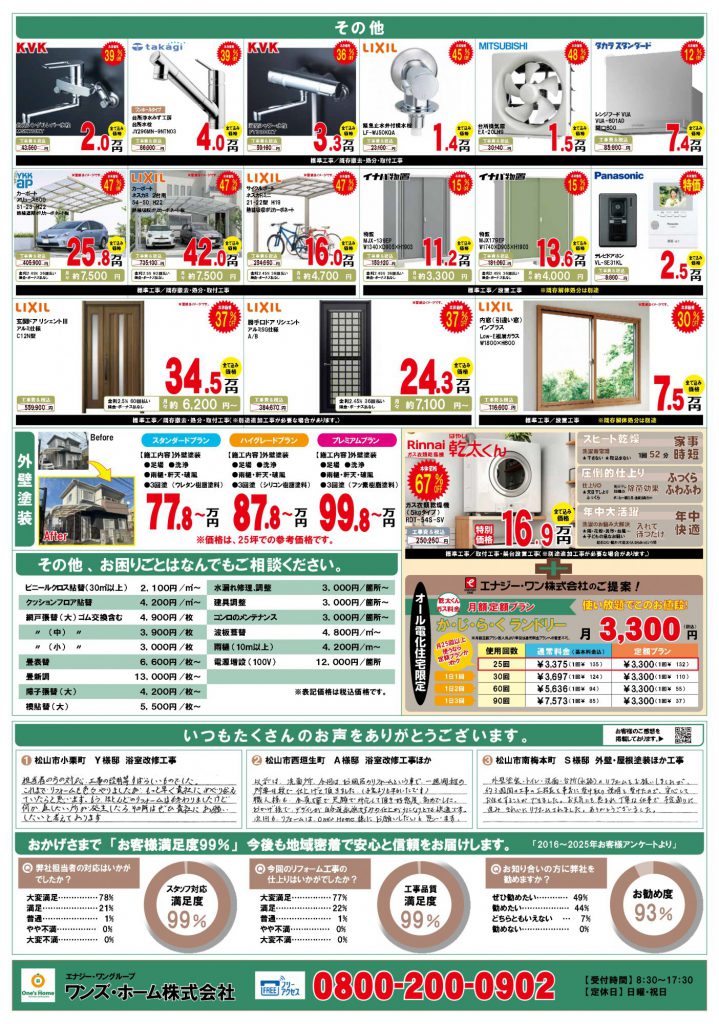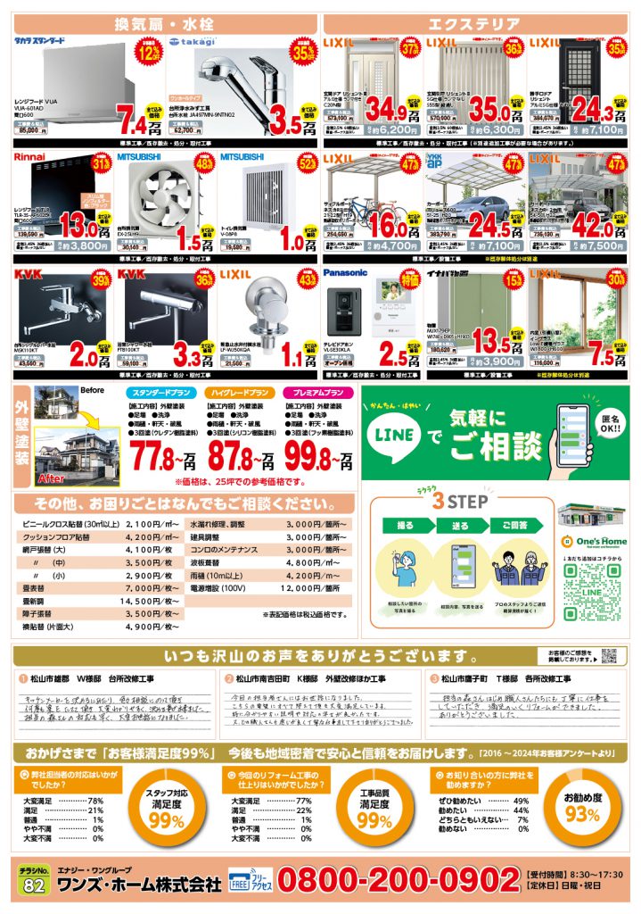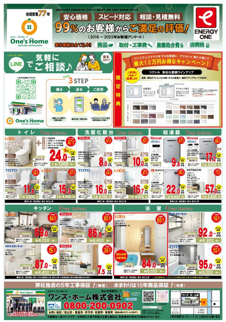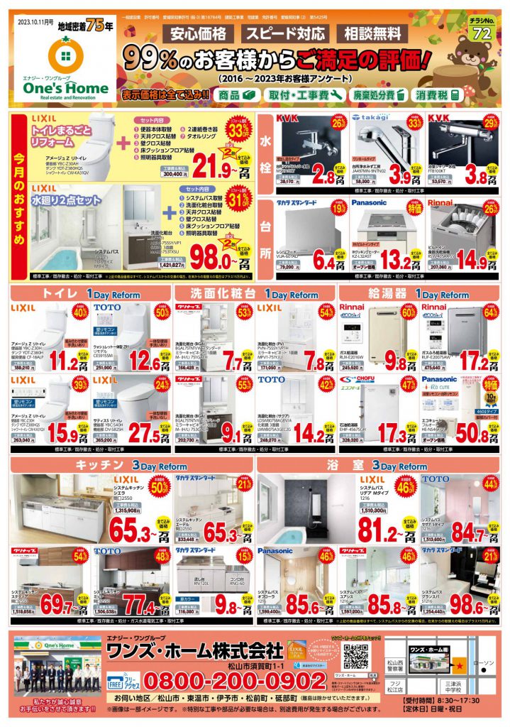 エコの観点から建物を長く大切に使うことが必要とされる時代、ライフスタイルの変化に合せた住環境づくりと建物の長寿命化を図るための良質なリフォームが求められています。当社グループ会社の「ワンズ・ホーム」は、水回りの小さなお困りごとから増改築などの大規模リフォームまで、お客様のご要望と暮らしに合つたリフォームプランで、快適な住まいづくりをお手伝いします。