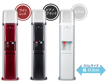 青いコックの「冷」からは水温6度前後の冷たい水が、赤いコックの「温」からは水温87度前後のお湯が利用できる便利なウォーターサーバーです。